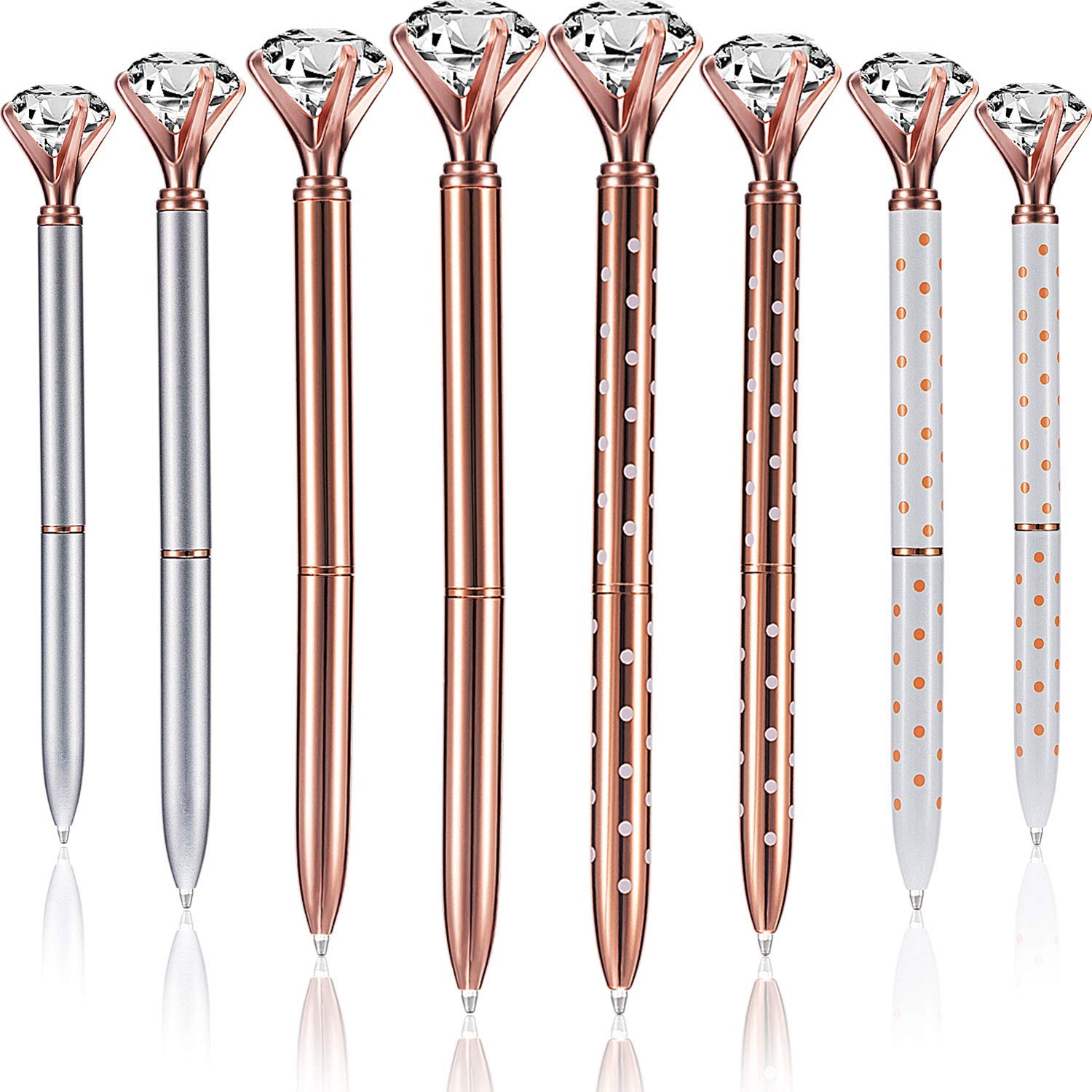 These show stopping big diamond rhinestone pens will make your writing style shine like a diamond. This set of 12 pens come in a variety of rose gold colors and the rhinestone diamond on top sparkles in the light as you write. Super cute and comfortable to hold these pens are great for bridal showers, kids birthday party favors or as a gift to yourself.